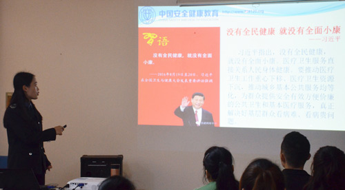 講座主要圍繞:遇到緊急情況和意外事故如何緊急救護(hù)、健康的生活方式以及中醫(yī)養(yǎng)生知識、霧霾對人體的危害、環(huán)境污染的危害和自我防護(hù)以及肩周炎、頸椎病等慢性職業(yè)病如何預(yù)防治療等方面展開。
