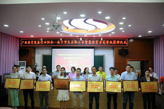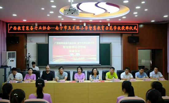 2018年6月27日上午,廣西教育裝備行業(yè)協(xié)會(huì)智慧教育示范學(xué)校掛牌儀式在南寧玉蘭路小學(xué)舉行,標(biāo)志著南寧市玉蘭路小學(xué)新時(shí)代教育信息化發(fā)展駛?cè)肓丝燔?chē)道,具有里程碑式重要意義。與會(huì)領(lǐng)導(dǎo)、全國(guó)教育裝備界的各知名企業(yè)代表、愛(ài)心人士、家長(zhǎng)代表、教師代表,一同出席了活動(dòng),見(jiàn)證了這一歷史性的時(shí)刻。
