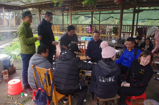 在這松林翠柏,湖光蕩漾的優(yōu)美自然風(fēng)光中,大家敞開心扉,真誠(chéng)交流,杯觥交錯(cuò),舉杯暢飲,友誼的花朵在靜靜的盛開,一片其樂融融的景象。飽餐之后,大家分組進(jìn)行了拔河比賽,加油聲、吶喊聲、歡笑聲接連不斷,大家共同出謀劃策、研究戰(zhàn)術(shù)、齊心協(xié)力,為團(tuán)隊(duì)的榮譽(yù)勇爭(zhēng)第一。